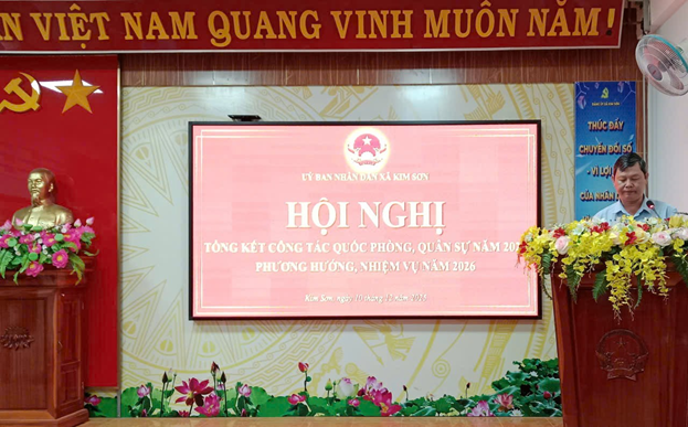 Ngày 10/12, UBND xã Kim Sơn tổ chức Hội nghị tổng kết nhiệm vụ quân sự, quốc phòng địa phương năm 2025 và triển khai nhiệm vụ năm 2026. Đồng chí Nguyễn Văn Thiện – Phó Bí thư Đảng ủy, Chủ tịch UBND xã chủ trì hội nghị.