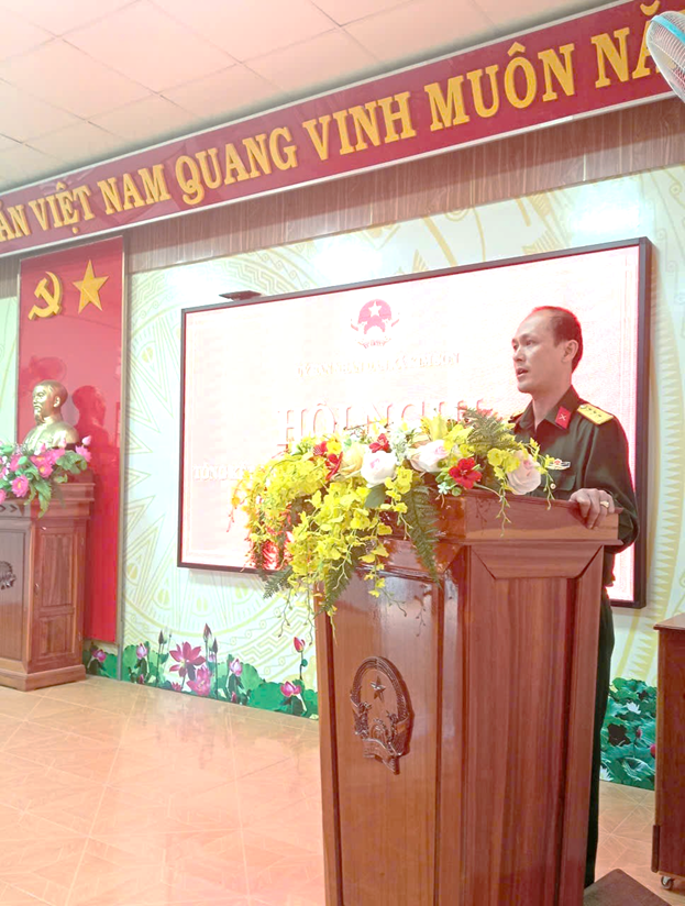 Đồng chí Thượng tá Võ Đình Việt, Phó chỉ huy trưởng BCH PT KV1 Hoài Nhơn Nam Phát biểu chỉ đạo tại hội nghị