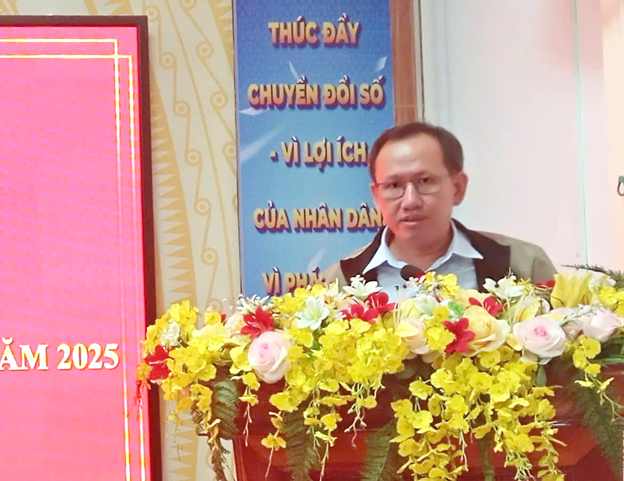 Ông Nguyễn Văn Thiện, Phó bí thư-Chủ tịch UBND xã Phát biểu khai mạc hội nghị