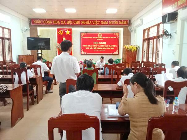 Hội nghị đã tập trung thảo luận kế hoạch trển khai các chỉ tiêu công tác PCGD, XMC trên địa bàn xã năm 2025. Theo kế hoạch, năm 2025 tiếp tục duy trì kết quả PCGD, XMC của xã Ân Nghĩa cũ và xã Bok Tới cũ đã đạt được trong năm 2024 và nâng cao chất lượng PCGD, XMC ở các độ tuổi trong năm 2025 trên địa bàn xã Kim Sơn, cụ thể: Toàn xã phấn đấu đạt chuẩn phổ cập giáo dục mầm non cho trẻ em 5 tuổi; đạt chuẩn phổ cập giáo dục tiểu học mức độ 3. Và đạt chuẩn phổ cập giáo dục trung học cơ sở mức độ 2. Đồng thời Toàn xã đạt chuẩn xóa mù chữ mức độ 2