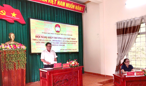 Ngày 05/12/2025, Ủy ban Mặt trận Tổ quốc Việt Nam xã Kim Sơn tổ chức Hội nghị hiệp thương lần thứ nhất nhằm thỏa thuận cơ cấu, thành phần và số lượng người được giới thiệu ứng cử đại biểu Hội đồng nhân dân xã nhiệm kỳ 2026 - 2031.