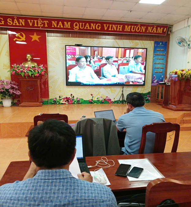 Các Đông lãnh đạo xã tham dự hội nghị tại điểm cầu xã Kim Sơn