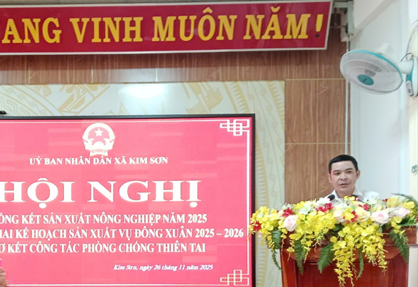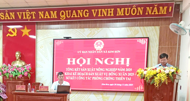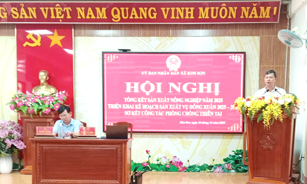 Chiều ngày 26/11/2025, UBND xã Kim Sơn tổ chức Hội nghị Tổng kết công tác sản xuất nông nghiệp năm 2025 và triển khai nhiệm vụ năm 2026. Đồng chí Nguyễn Văn Thiện - Phó Bí thư Đảng ủy, Chủ tịch UBND xã chủ trì hội nghị.