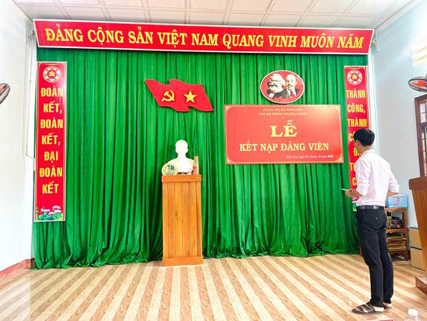 Chiều ngày 01 tháng 12 năm 2025. Chi bộ Thôn Nghĩa Nhơn thuộc đảng bộ xã Kim Sơn, đã tổ chức Lễ kết nạp đảng viên mới cho đồng chí Nguyễn Minh Nhật là công dân ưu tú trên địa bàn, hiện đang công tác tại văn phòng HĐND-UBND xã Kim Sơn. Đến dự Lễ kết nạp có đồng chí Hoàng Quốc Tuấn, Phó Bí thư TT đảng uỷ xã. Lễ kết nạp được diễn ra trong không khí trang nghiêm, đúng trình tự, thủ tục của Điều lệ Đảng.
