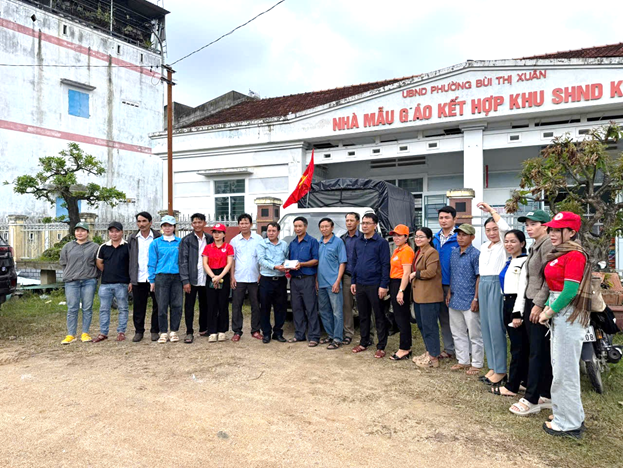 Tại thôn Hoà An xã Tuy Phước Tây, Đoàn đã trao tặng 100 suất quà cho bà con bị thiệt hại năng, mỗi suất gồm: 10kg gạo, 1 thùng mỳ, dầu ăn, bột ngọt và 300 nghìn tiền mặt, trị giá một suất 550 nghìn đồng.