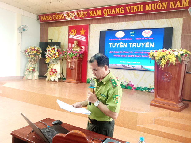 Thực hiện Kế hoạch số 120/HKL-QLBVR ngày 10/10/2025 của Hạt Kiểm lâm khu vực Hoài Ân. Sáng 23/10/2025, UBND xã Kim Sơn phối hợp với Hạt Kiểm lâm Khu vực Hoài Ân tổ chức hội nghị tuyên truyền những quy định về công tác quản lý bảo vệ rừng và phòng cháy chữa cháy rừng, và phổ biến các văn bản quy phạm pháp luật trong lĩnh vực lâm nghiệp cho cán bộ và người dân trên địa bàn xã.