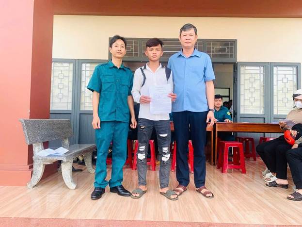 Thanh niên Đinh Văn Man, thôn T1(đứng giữa) tình nguyện tham gia NVQS