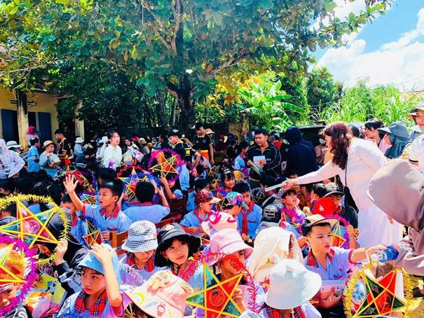 Cụ thể, chương trình đã trao tặng 300 suất quà gồm: vở, bút và bánh kẹo với tổng trị giá hàng chục triệu đồng